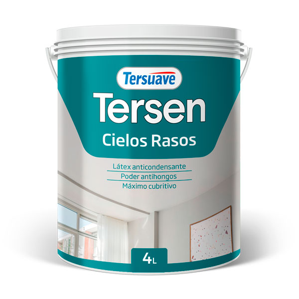 Látex desarrollado para Cielos Rasos en interiores, de acabado mate, con poder antihongos y máximo cubritivo. Tersen Cielos Rasos actúa como anticondensante evitando la retención de humedad y obteniendo la mayor performance de rendimiento. Color, Blanco. USOS En interiores, ideal para aplicar sobre superficies de mampostería, hormigón, fibrocemento, yeso, ladrillo, madera y papel pintable. CARACTERISTICAS…