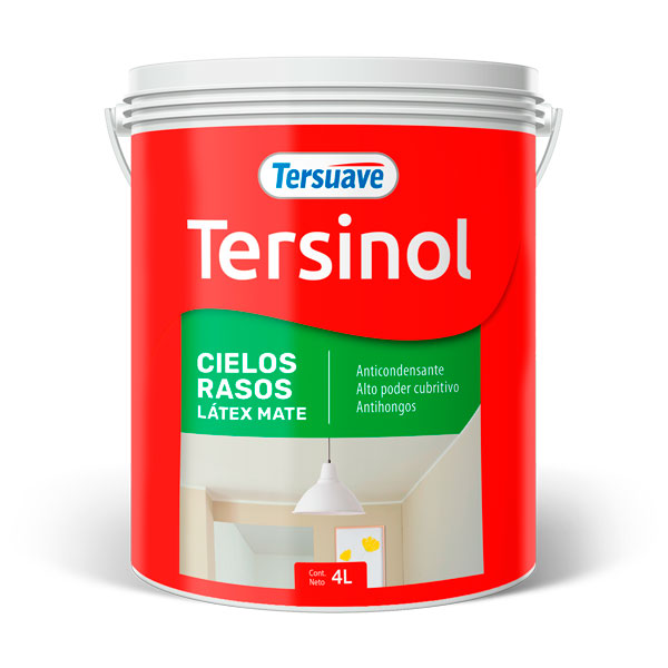 Látex desarrollado específicamente para Cielos Rasos, es un producto de acabado mate, anticondensante y de máximo rendimiento que previene la formación de hongos a través de agentes específicos. Tersinol Cielos Rasos Látex Mate posee aditivos especiales que permiten obtener excelentes resultados a través de su fácil aplicación y alto poder cubritivo. Color, Blanco.