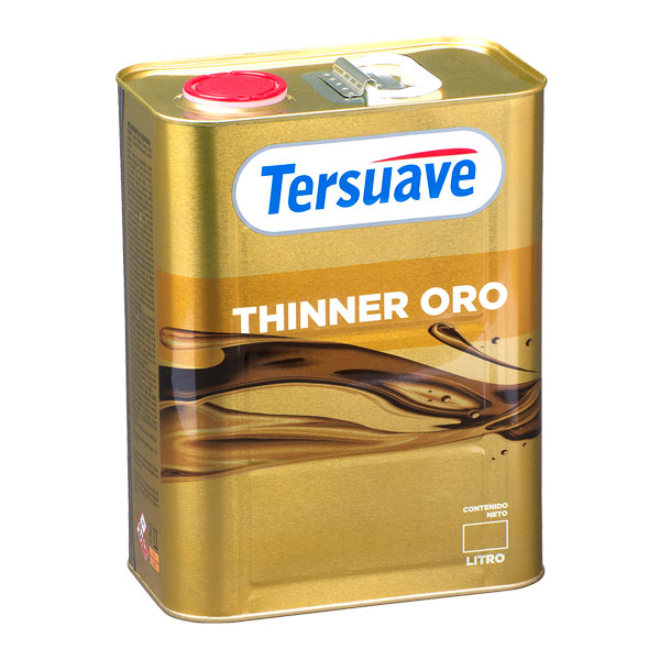 Tersuave Thinner Oro forma parte de una línea de productos que permiten diluir eficazmente pinturas y lacas de la línea de automotor e industrial, otorgando alta performance de brillo y un acabado final inmejorable de acuerdo al magnífico balance de sus componentes, favoreciendo la aplicación con soplete según las exigencias pretendidas. Thinner Oro permite obtener brillos duraderos y una extraordinaria nivelación en un rango de evaporación equilibrada, logrando excelente comportamiento a mediano y alto rango de temperaturas, evitando el blanqueo y el velado por su extraordinaria fórmula Hi-Performance hasta con 80 % HRA a 20°C. Importante: NO apto para productos poliuretánicos.